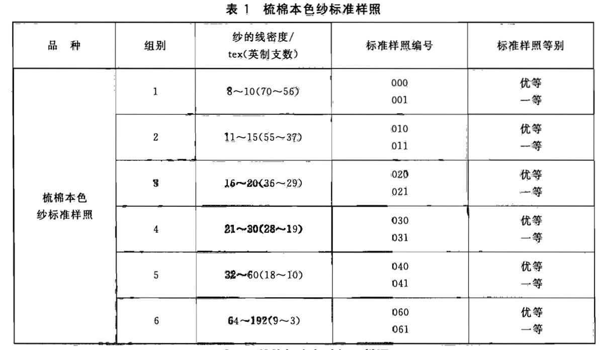 【表1梳棉本色紗標(biāo)準(zhǔn)樣照】